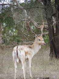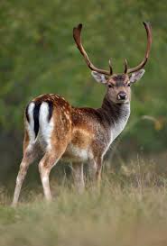 The fallow deer (Dama dama) is a medium-sized deer species known for its typically spotted coat, white rump patch outlined in black, and broad, palmate (shovel-shaped) antlers on the males (bucks).